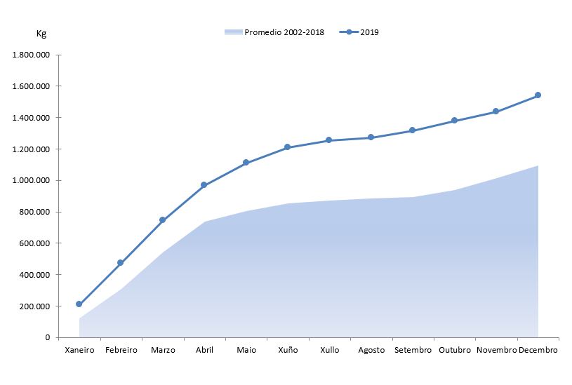 | Ortiguilla de mar | 17.957 | 191.743 | 21.427 | 213.853 | -3.469 | -22.111 | -16,19% | -10,34% |