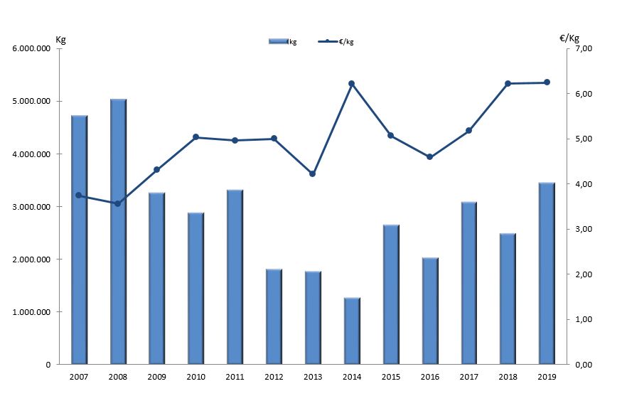 | Zona VIII - Cedeira | 4.933 | 8.816 | 9.010 | 29.170 | 66.352 | 33.153 | 20.800 | 29.945 | 35.838 | 40.771 | 40.094 | 38.335 | 35.644 |