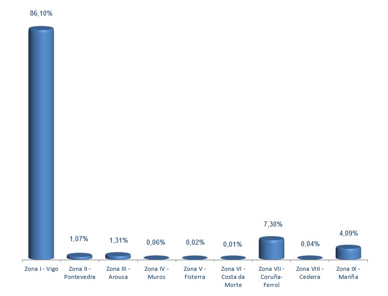 | Zona VI - Costa da Morte | 129 | 824 | 0,01% | 5.587 | 0,02% | 6,78 |