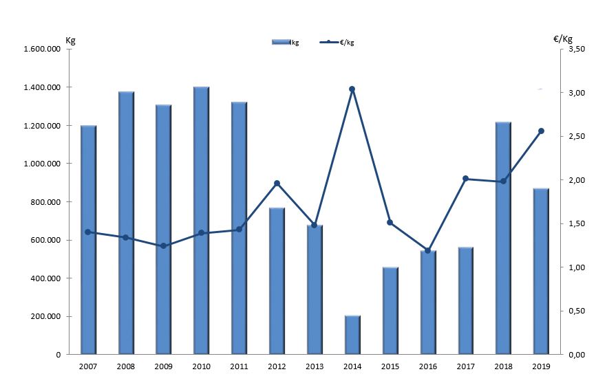 | Nº días | kg | % | Euros | % | Euros/kg | |