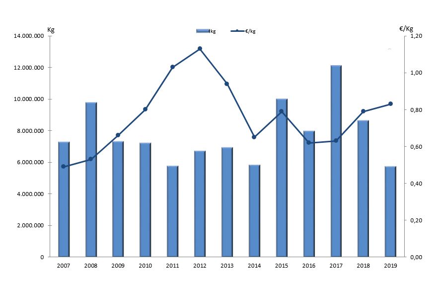 | Nº días | kg | % | Euros | % | Euros/kg | |