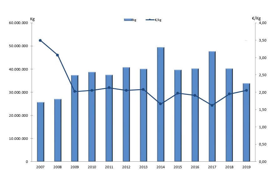 | Nº días | kg | % | Euros | % | Euros/kg | |