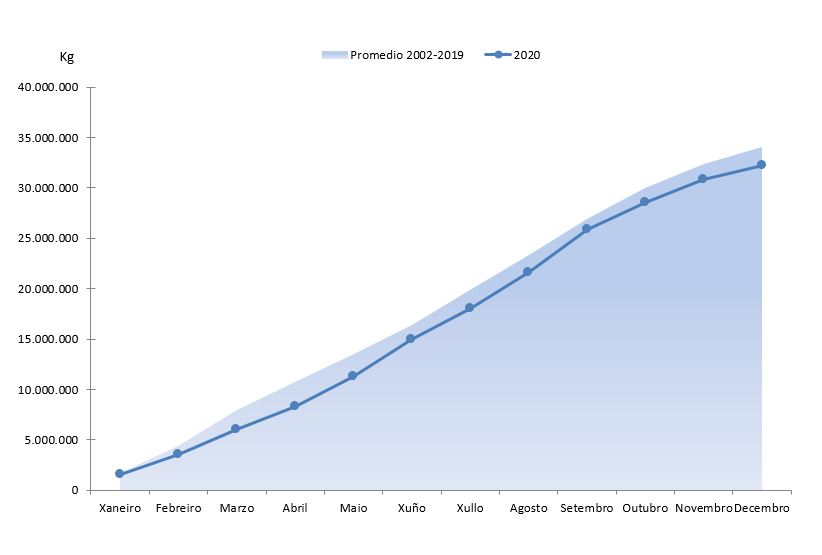 | Vilaxoán | 68.728 | 742.928 | 81.610 | 873.164 | -12.881 | -130.235 | -15,78% | -14,92% |