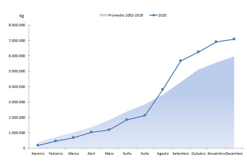 | Laxe | 295.994 | 1.103.945 | 336.130 | 1.414.630 | -40.136 | -310.685 | -11,94% | -21,96% |