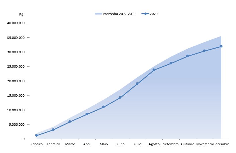 | Crustáceos | 391.805 | 5.016.666 | 399.081 | 5.700.632 | -7.276 | -683.965 | -1,82% | -12,00% |