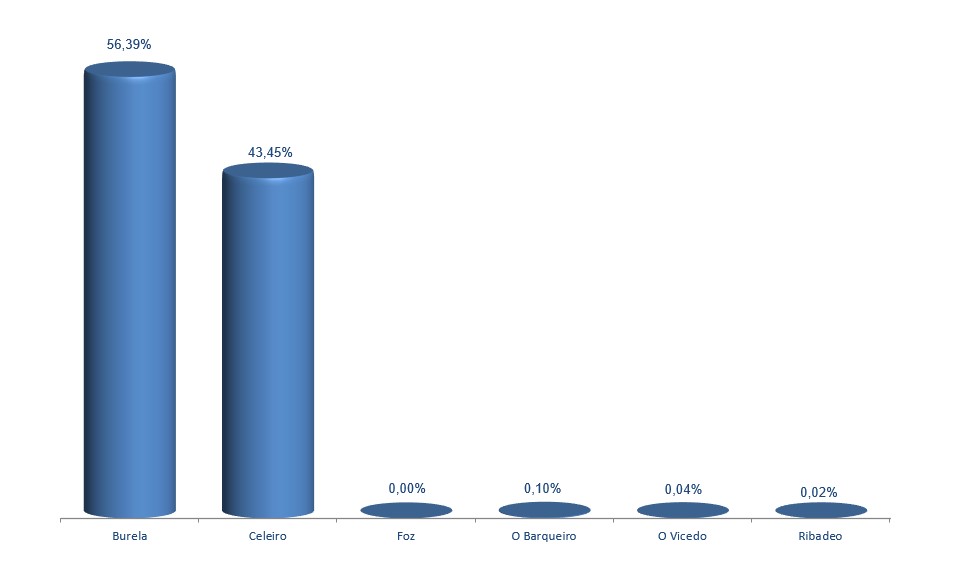| Burela | 19.347.557 | 56,39% | 60.648.046 | 57,67% | 3,13 |