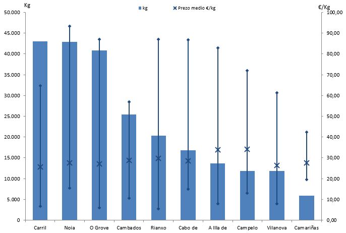 | Cambados | 209 | 25.381 | 9,48% | 729.862 | 9,92% | 28,76 |