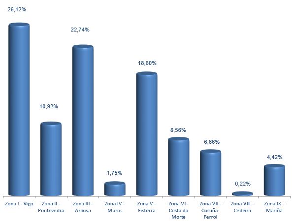 | Zona II - Pontevedra | 100 | 67.428 | 10,92% | 730.160 | 13,58% | 10,83 |