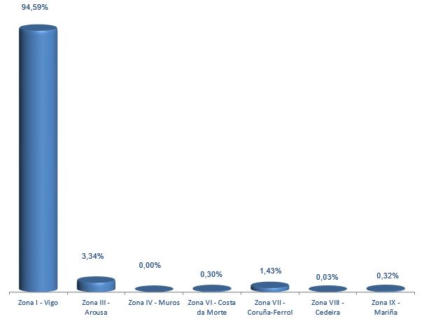 | Zona I - Vigo | 142 | 1.222.884 | 94,59% | 7.238.796 | 94,40% | 5,92 |