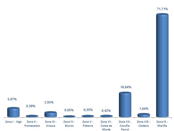 | Zona VI - Costa da Morte | 238 | 109.336 | 0,42% | 335.295 | 0,34% | 3,07 |