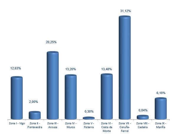 | Zona VI - Costa da Morte | 234 | 4.306.542 | 13,48% | 3.137.302 | 11,84% | 0,73 |
