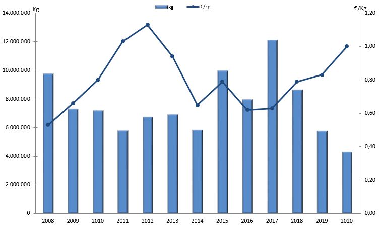 | Nº días | kg | % | Euros | % | Euros/kg | |
