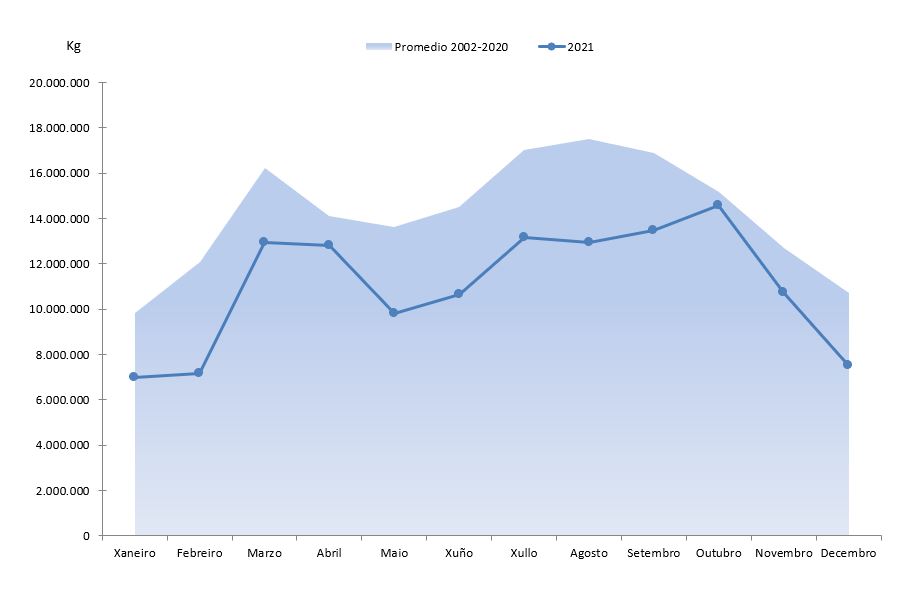 | Xaneiro | 6.974.780 | 27.128.080 | 7.391.866 | 34.354.005 | -417.086 | -7.225.924 | -5,64% | -21,03% |