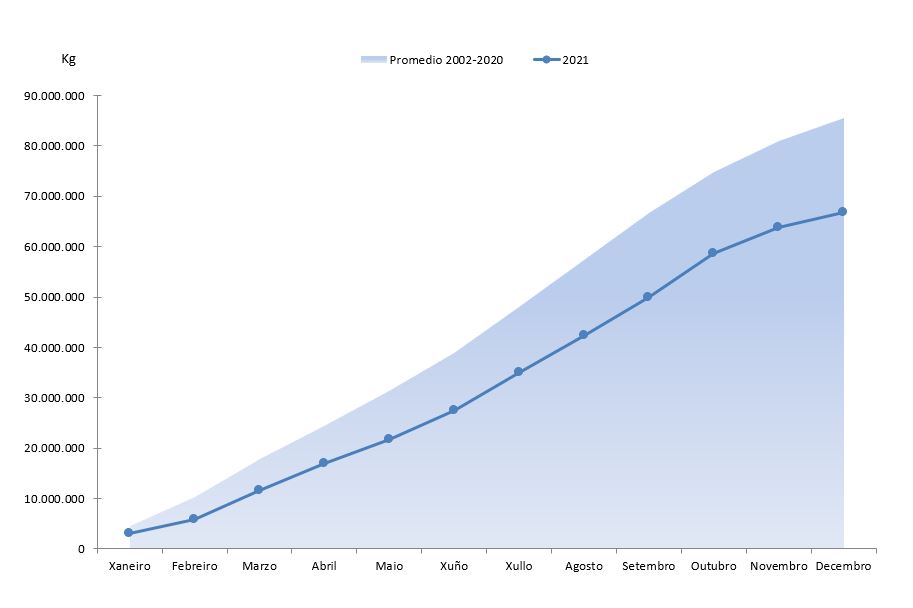 | Bivalvos | 3.266.031 | 32.117.325 | 3.047.887 | 28.958.085 | 218.144 | 3.159.240 | 7,16% | 10,91% |