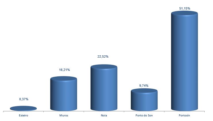 | Esteiro | 27.942 | 0,37% | 384.524 | 1,60% | 13,76 |