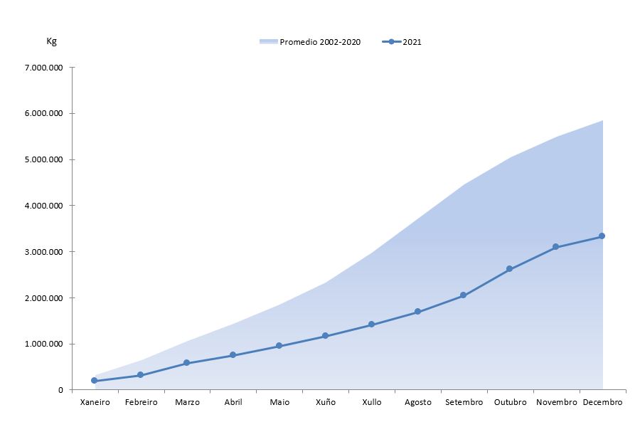| Bivalvos | 620.033 | 8.280.838 | 579.626 | 6.125.809 | 40.408 | 2.155.028 | 6,97% | 35,18% |