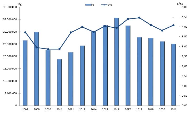 | Zona VIII - Cedeira | 332.528 | 255.992 | 212.500 | 141.137 | 141.033 | 366.881 | 276.785 | 383.568 | 514.549 | 983.745 | 945.770 | 425.598 | 361.113 |
