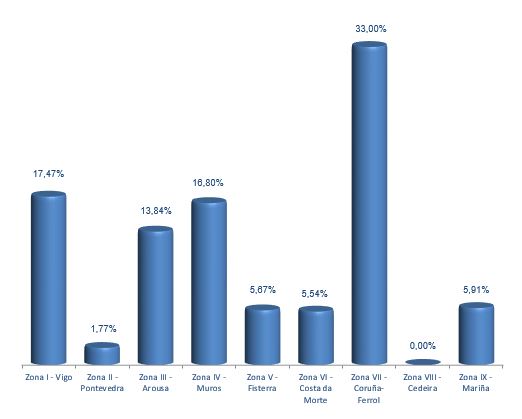 | Zona VIII - Cedeira | 2 | 38 | 0,00% | 16 | 0,00% | 0,42 |