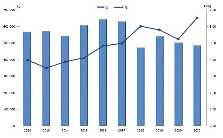 | Nº días | kg | % | Euros | % | Euros/kg | |