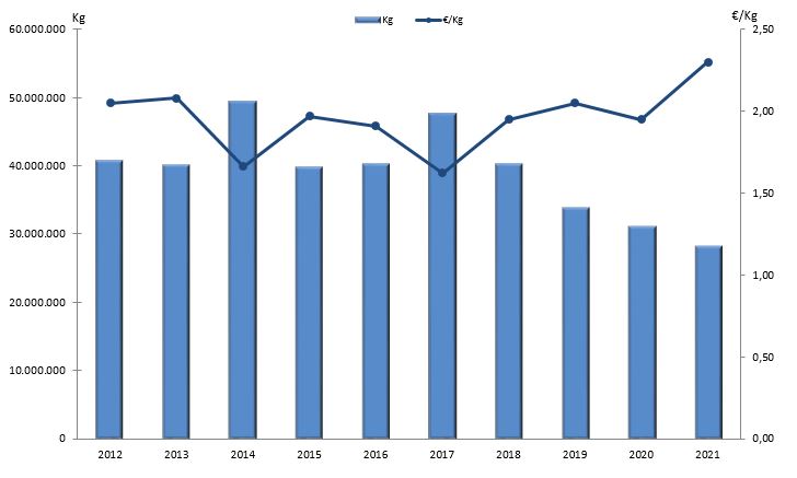 | Nº días | kg | % | Euros | % | Euros/kg | |