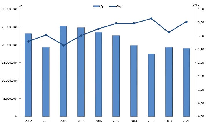 | Nº días | kg | % | Euros | % | Euros/kg | |