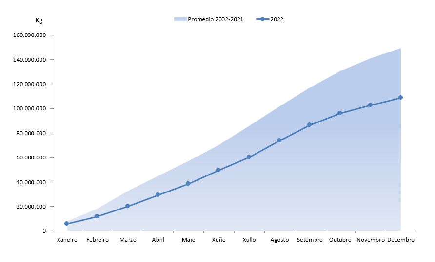 | Lamprea de mar | 6.067 | 171.750 | 11.677 | 158.045 | -5.611 | 13.705 | -48,05% | 8,67% |