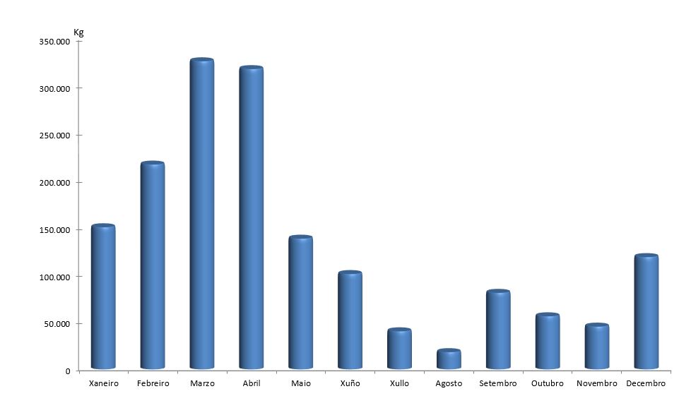 | Ovas de pescada | 21.958 | 25.395 | 27.404 | 12.046 | 11.494 | 13.051 | 12.915 | 4.475 | 1.842 | 1.912 | 2.955 | 9.564 | 145.012 |