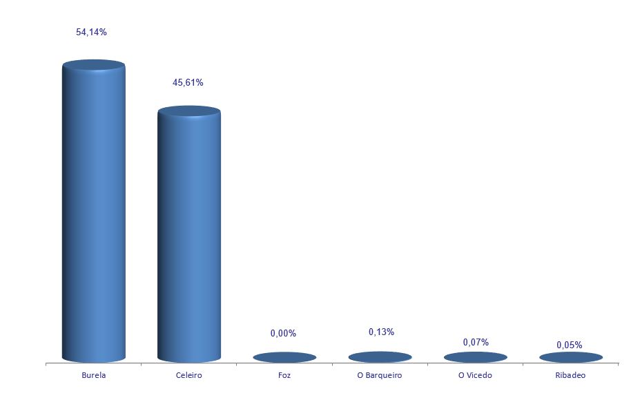 | O Vicedo | 21.195 | 0,07% | 22.546 | 0,02% | 1,06 |