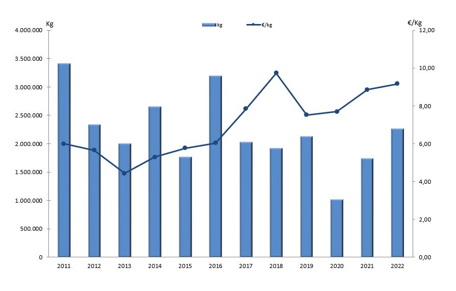 | Zona VIII - Cedeira | 110.137 | 85.140 | 60.405 | 83.426 | 32.120 | 19.260 | 20.189 | 21.312 | 28.305 | 16.292 | 17.150 | 24.768 | |