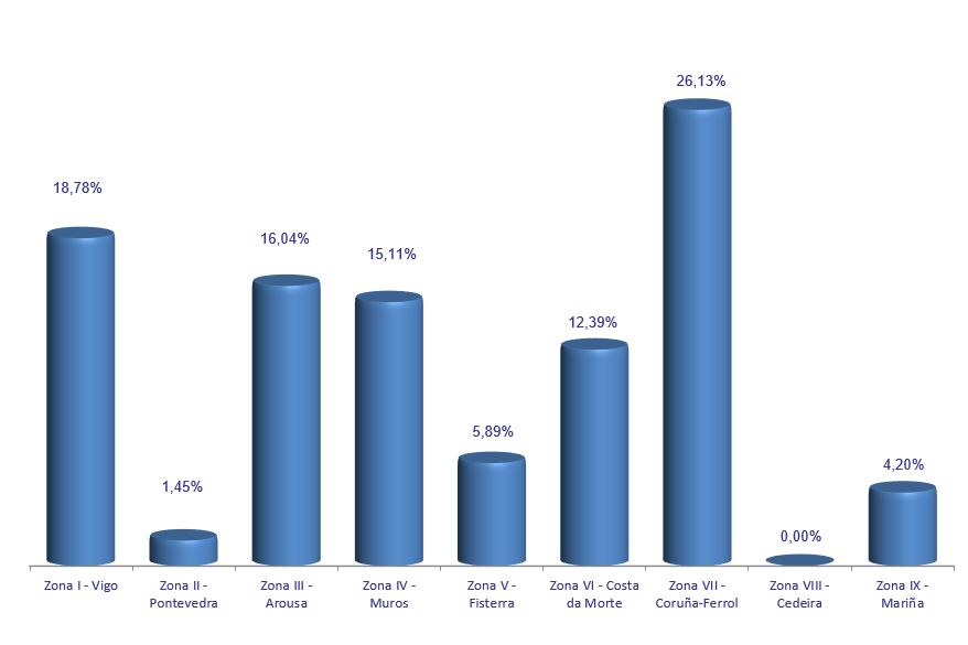 | Zona VI - Costa da Morte | 106 | 1.420.138 | 12,39% | 1.496.783 | 10,94% | 1,05 |