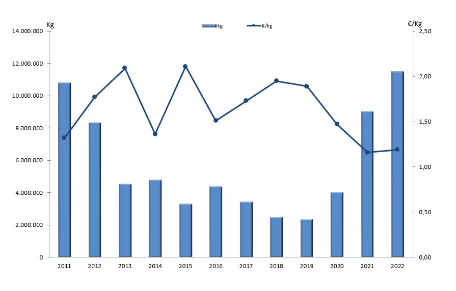 | Zona II - Pontevedra | 350.490 | 379.413 | 169.939 | 137.902 | 151.645 | 203.401 | 188.045 | 109.442 | 75.724 | 130.466 | 159.674 | 165.918 | |
