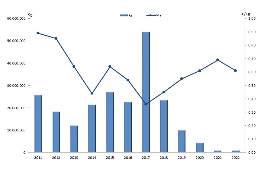 | Zona VI - Costa da Morte | 570.690 | 579.412 | 341.583 | 1.871.332 | 5.112.150 | 2.294.127 | 2.264.287 | 1.394.611 | 322.026 | 214.467 | 148.627 | 224.136 | |