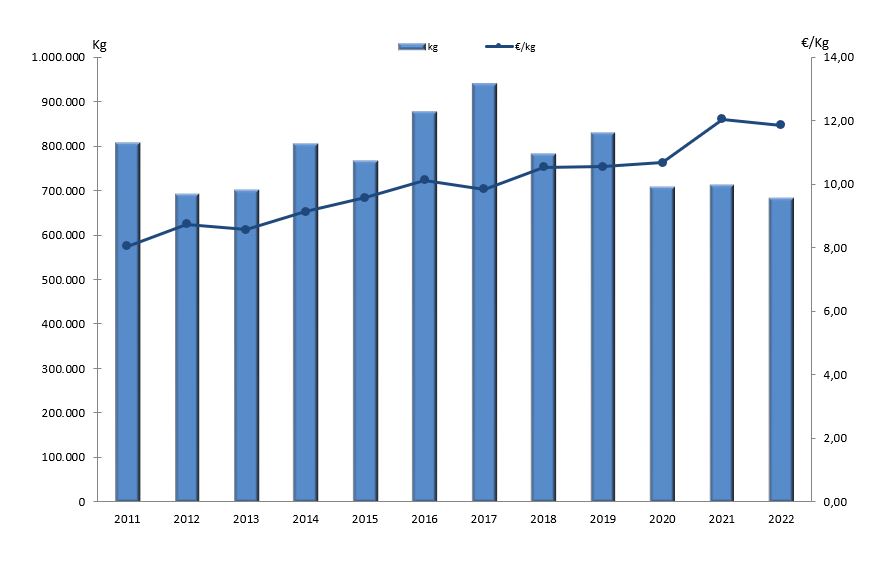 | Centola ou centolo | 157 | 108.974 | 15,95% | 1.426.497 | 17,60% | 13,09 |