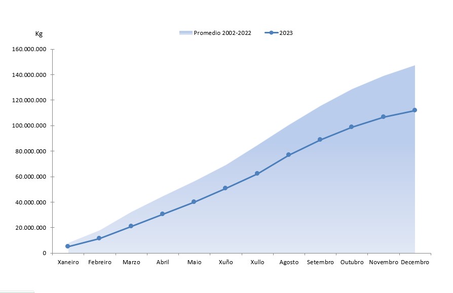 | Xurelo negro | 2.145 | 4.059 | 5.247 | 9.231 | -3.102 | -5.172 | -59,11% | -56,02% |