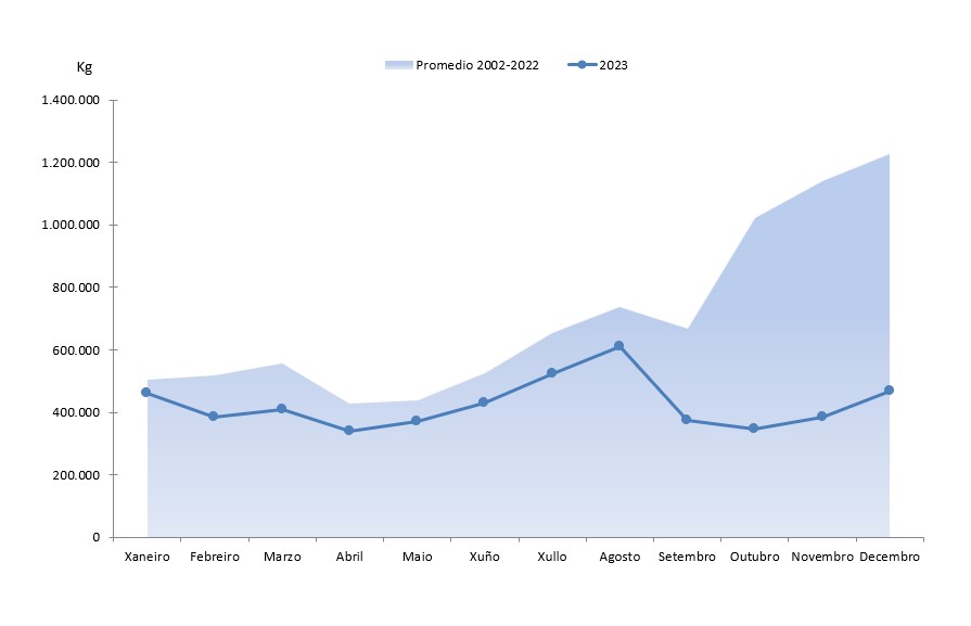 | Xuño | 429.115 | 5.368.353 | 533.252 | 5.342.696 | -104.137 | 25.657 | -19,53% | 0,48% |