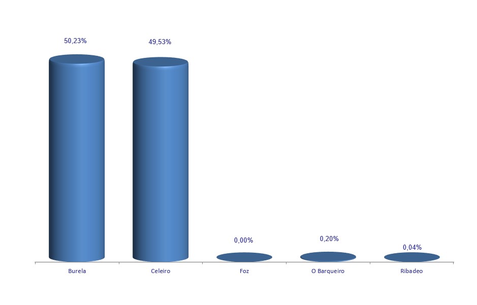 | Ribadeo | 10.608 | 0,04% | 126.922 | 0,12% | 11,96 |
