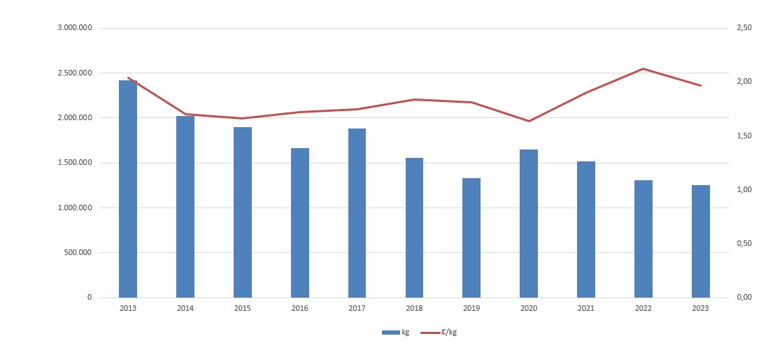 | Zona VII - Coruña-Ferrol | 1.088.638 | 825.564 | 768.780 | 694.433 | 776.820 | 537.770 | 487.906 | 688.383 | 719.094 | 626.684 | 481.335 | ||