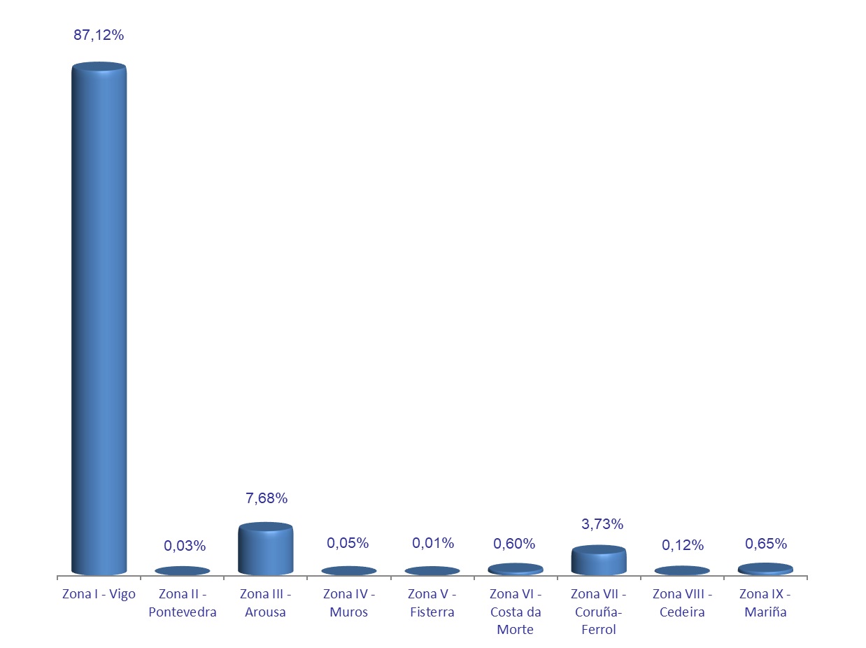 | Zona I - Vigo | 138 | 867.122 | 87,12% | 6.037.937 | 87,50% | 6,96 |