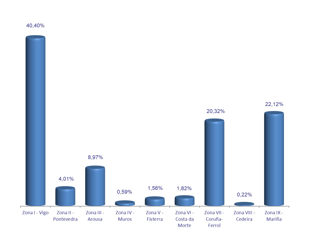 | Zona I - Vigo | 286 | 396.569 | 40,40% | 941.698 | 41,34% | 2,37 |