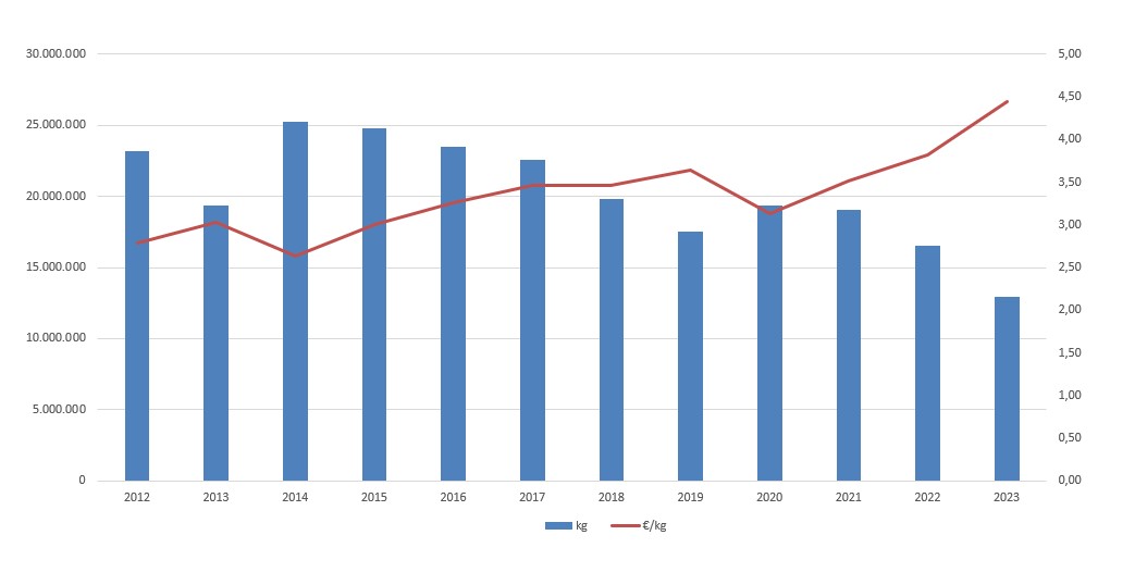 | Nº días | kg | % | Euros | % | Euros/kg | |