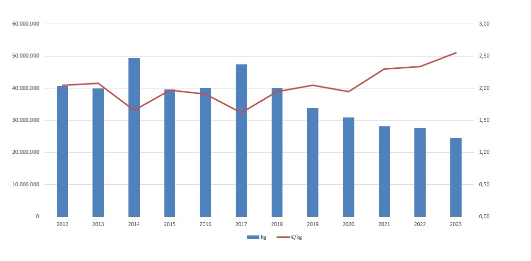 | Nº días | kg | % | Euros | % | Euros/kg | |