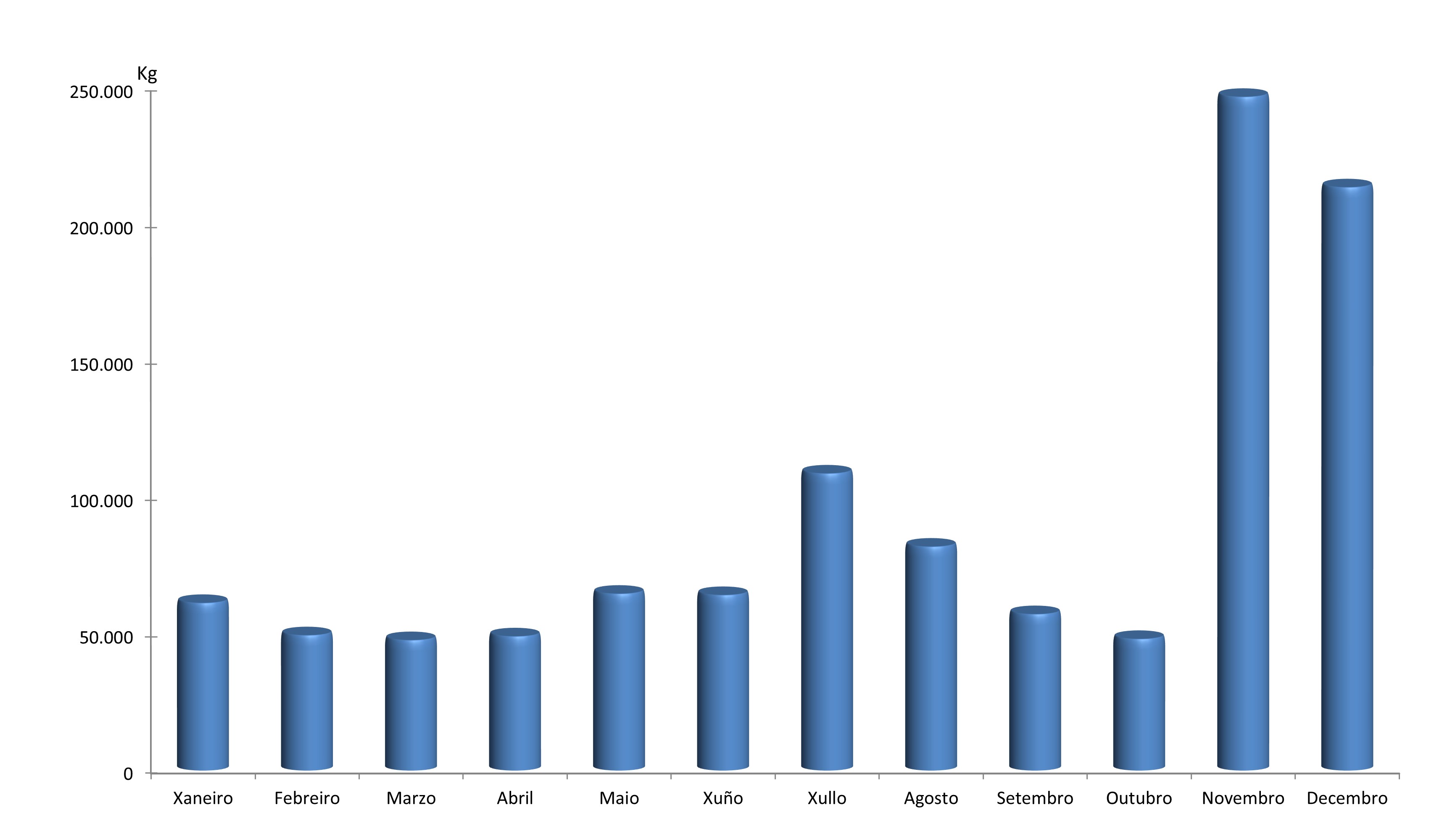 | Percebe | 7.126 | 7.758 | 11.765 | 16.374 | 21.360 | 21.179 | 36.444 | 28.334 | 20.727 | 14.466 | 15.567 | 29.470 | 230.570 |