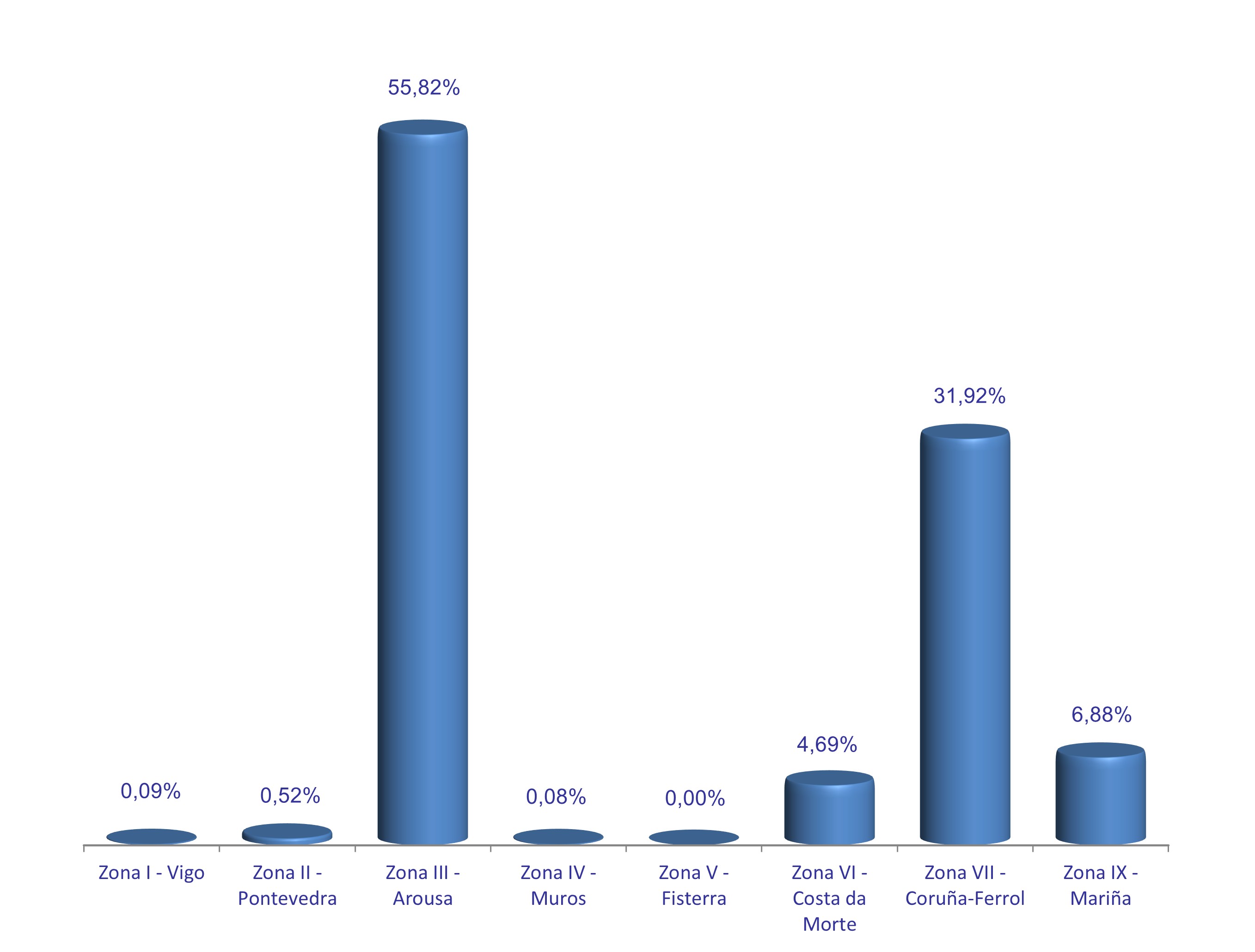 | Zona VI - Costa da Morte | 118 | 885.072 | 4,69% | 870.532 | 4,44% | 0,98 |