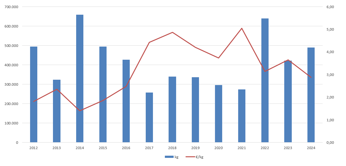 | Nº días | kg | % | Euros | % | Euros/kg | |