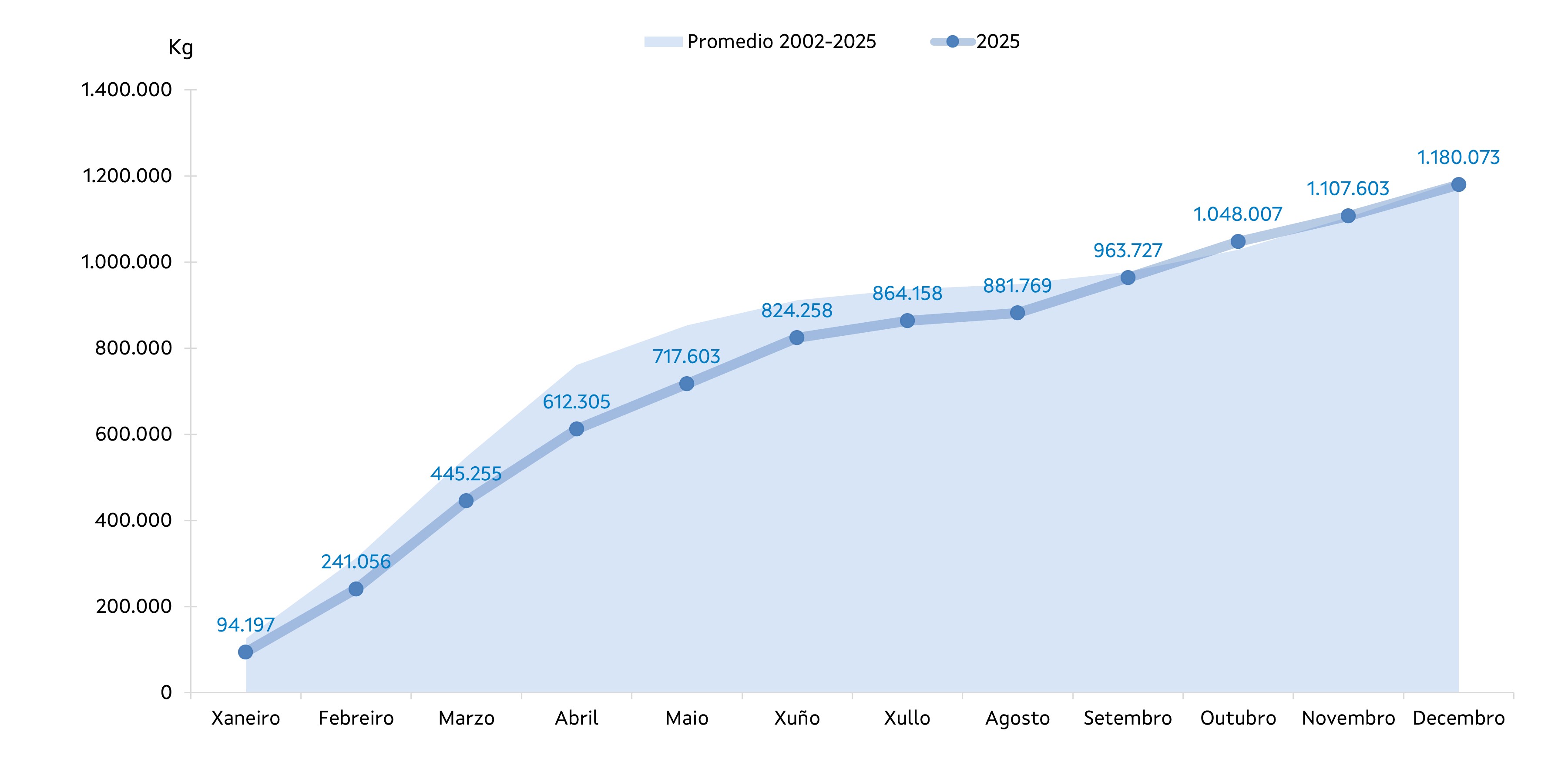 | Cogombro de mar real | 80.157 | 245.544 | 88.328 | 260.598 | -8.170 | -15.054 | -9,25% | -5,78% |