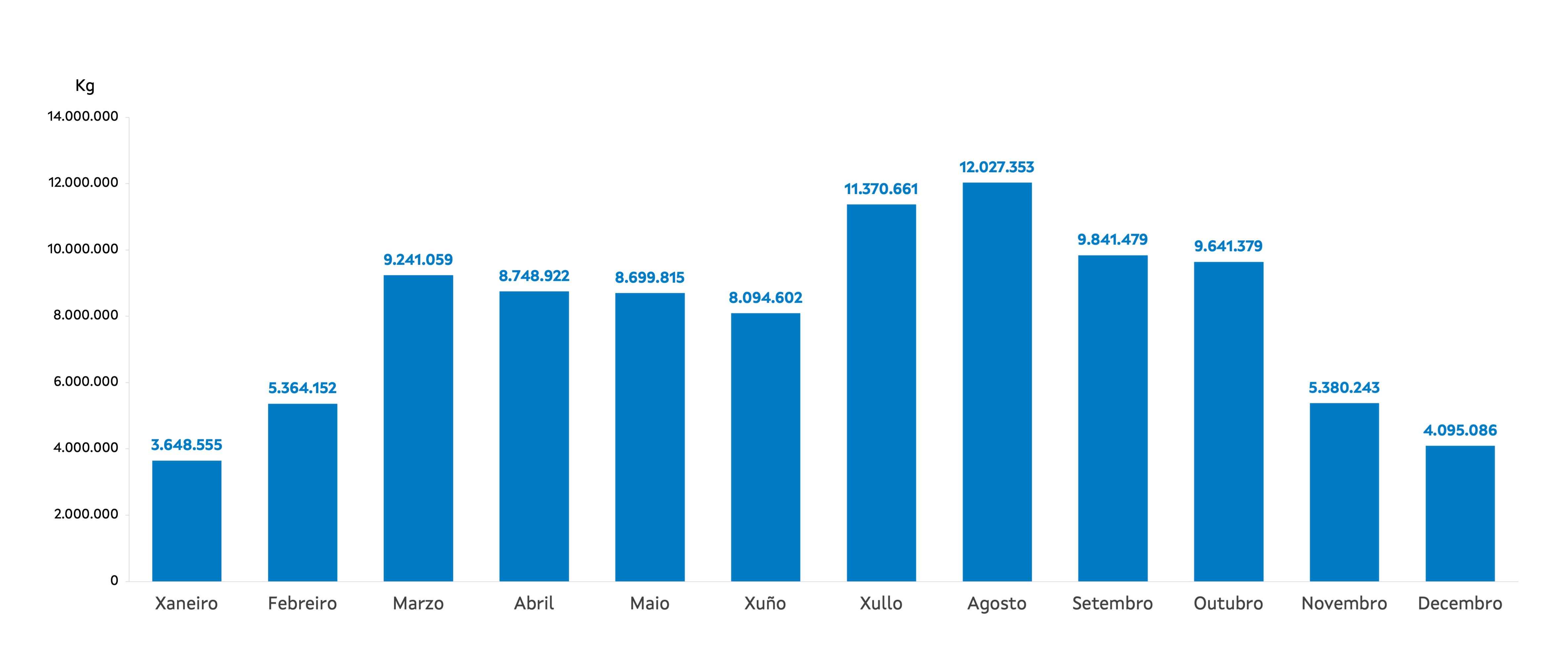 | Xurelo | 218.549 | 565.909 | 277.379 | 440.441 | 639.438 | 570.873 | 663.396 | 2.631.550 | 2.920.888 | 1.879.868 | 1.061.580 | 272.667 | 12.142.537 |