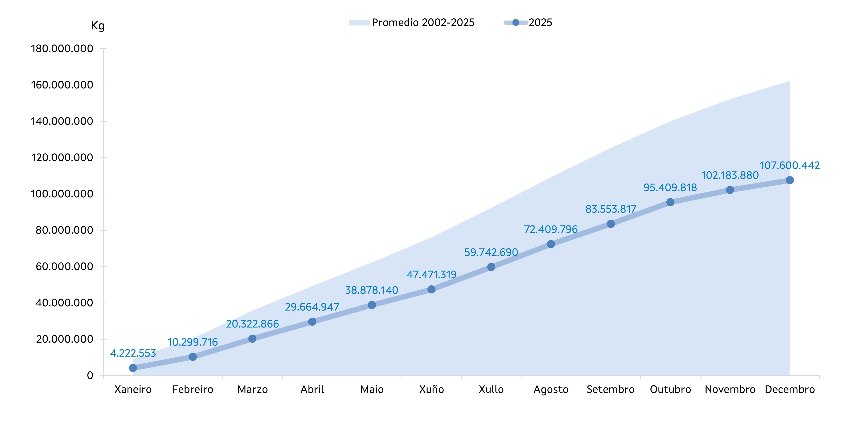 | Zona IX - Mariña | 22.060.289 | 104.922.159 | 22.792.732 | 105.136.207 | -732.444 | -214.048 | -3,21% | -0,20% |