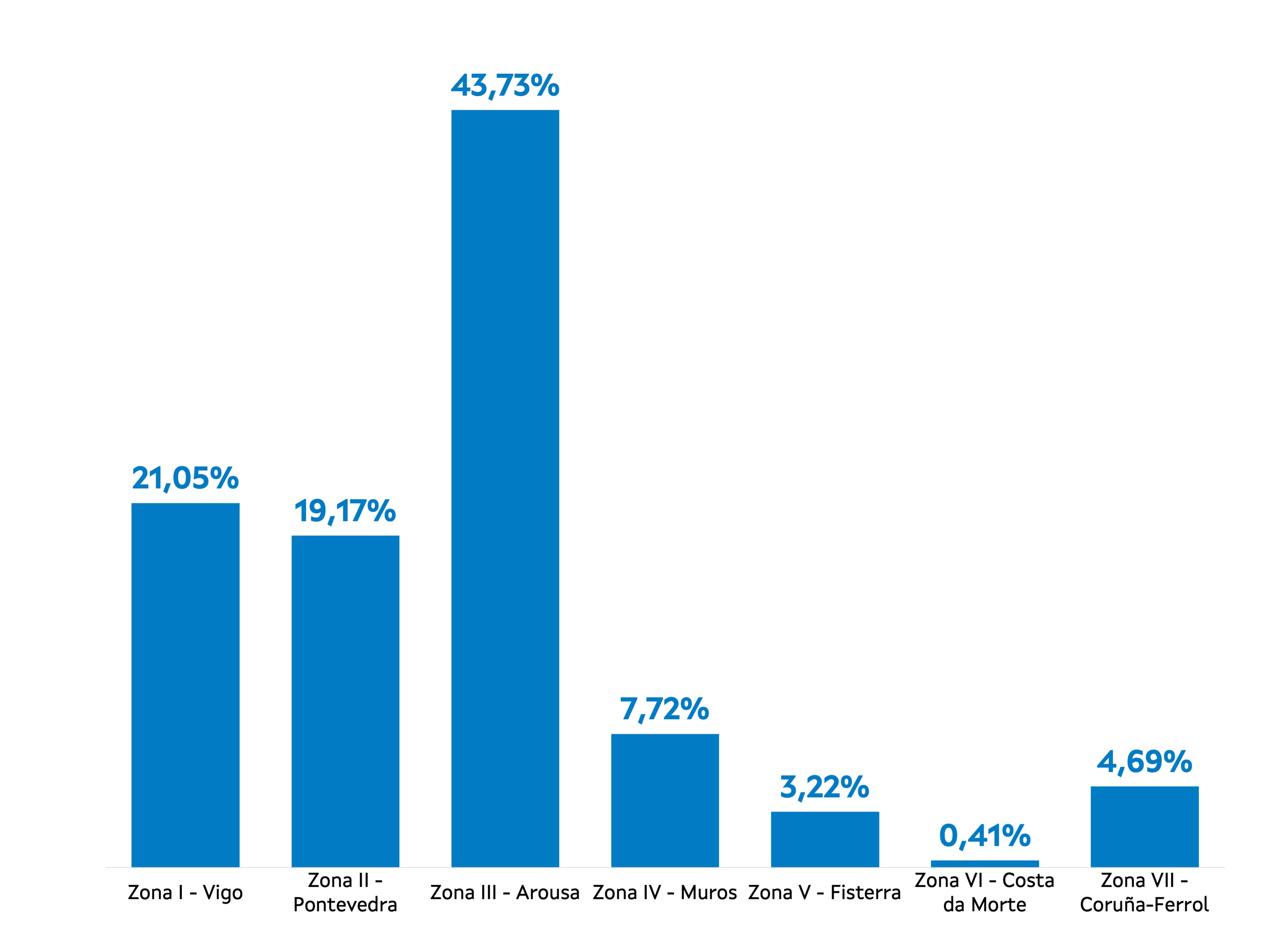 | Zona III - Arousa | 251 | 183.058 | 43,73% | 3.037.820 | 42,88% | 16,59 |
