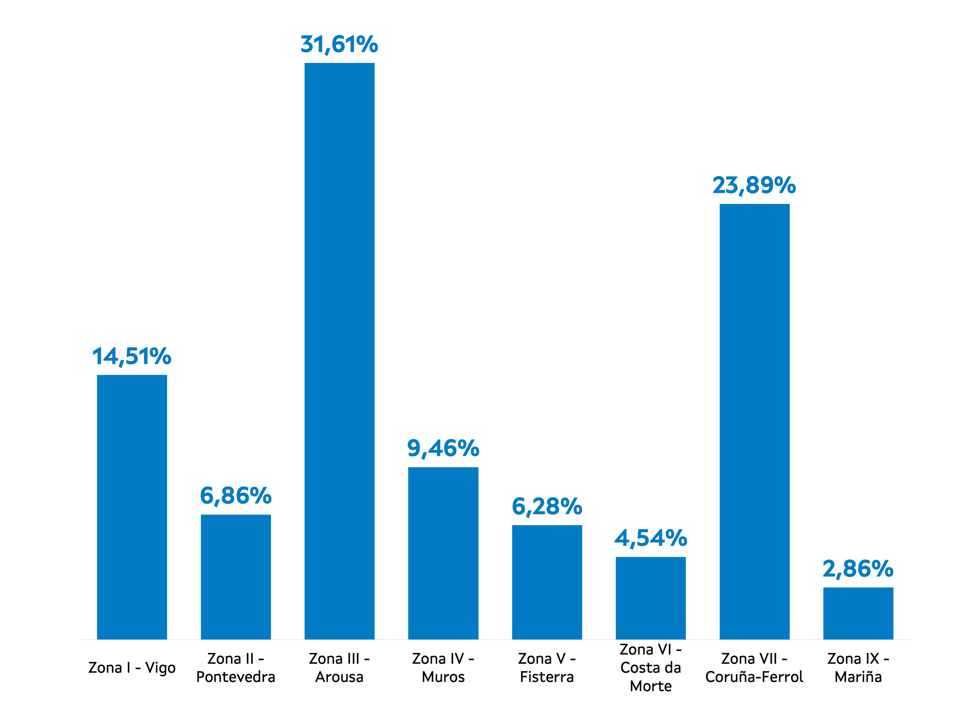 | Zona III - Arousa | 218 | 4.624.855 | 31,61% | 8.662.939 | 39,72% | 1,87 |