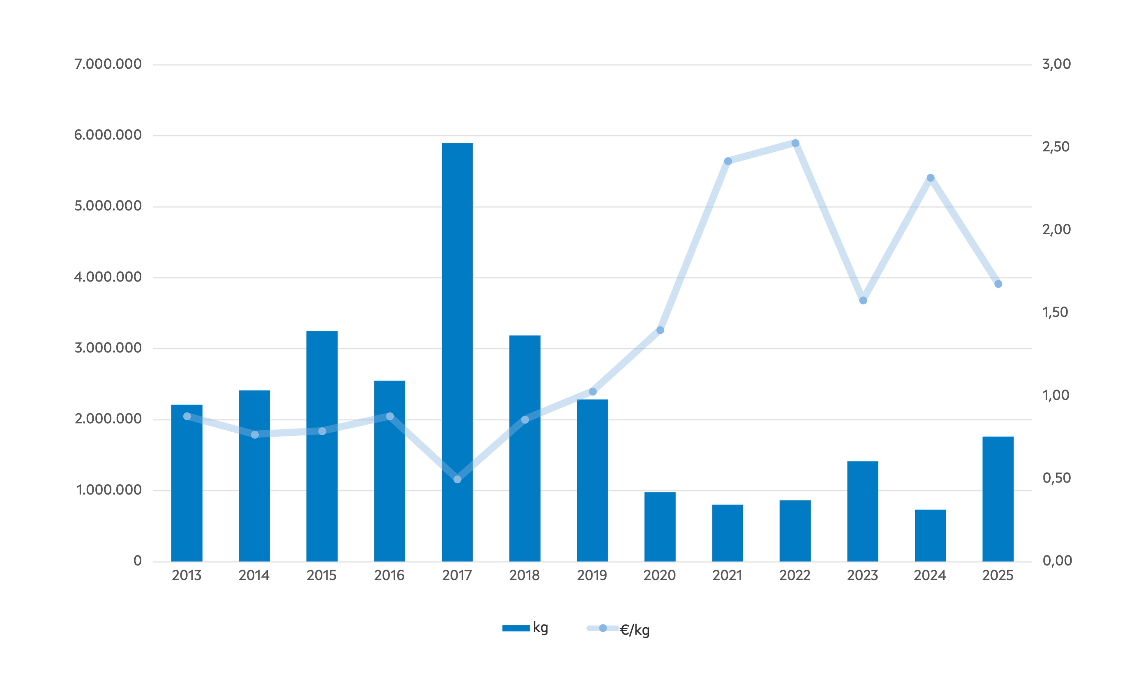 | Nº días | kg | % | Euros | % | Euros/kg | |
